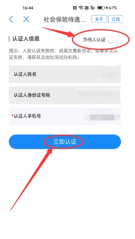 2:资格认证。返回“首页”页面,搜索“认证”后选择“社会保险待遇资格认证”,完成授权确认步骤,即可选择待认证事项。若为“本人认证”,直接点击“立即认证”;若需“为他人认证”(如配偶、父母、亲属等),则先开启“为他人认证”功能,添加相关人员信息后进行认证操作。