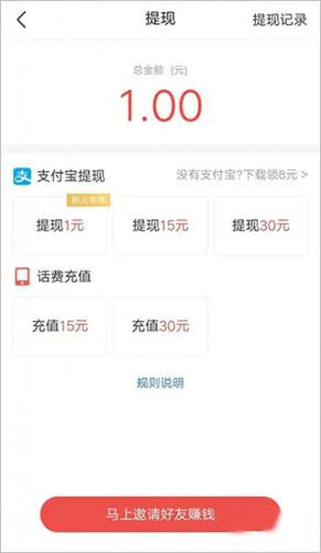 4、若软件内设有可提现的金额,可直接将其提取至支付宝账户。