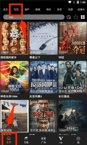打开应用主页后,点击进入电影板块,就能浏览包括《我和我的家乡》在内的各类影片了。