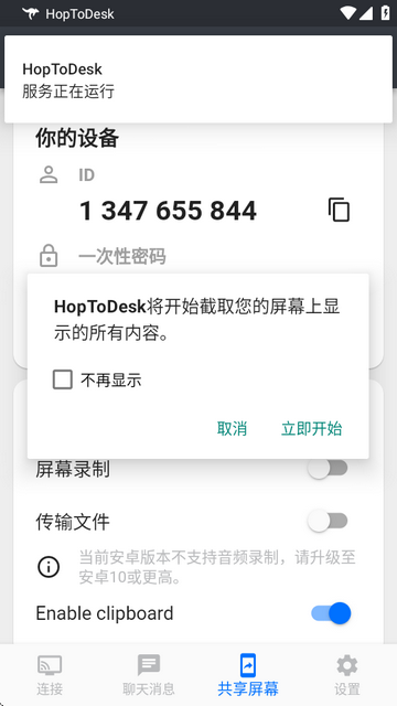 在两台设备上各自安装并启动HopToDesk应用程序。