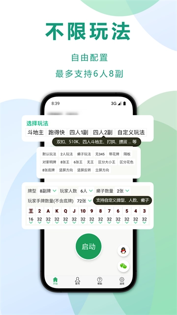 1、其通用性覆盖了绝大多数流行扑克玩法,免去了玩家为不同游戏寻找专用工具的繁琐过程。