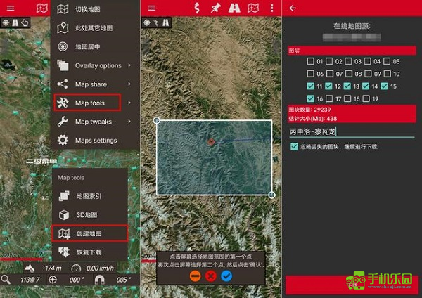 本地地图可以把OZI格式地图转换(OZI中全中国地图很详细的,很多小路都有)成OruxMAPS格式软件把在线地图制作成本地地图,本地地图会根据地图级别自动切换(例如有15级google maps和16级google earth,则放大15级地图会自动切换到16级的google earth)。