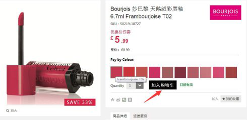 针对带有色号等选择项的产品,可点击该单品进入详情页面,挑选心仪的颜色并确定所需数量,之后将其添加至购物车。