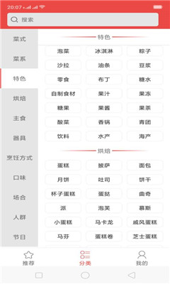 2;烘焙类:面包、饼干、戚风蛋糕、泡芙、蛋糕卷、杯子蛋糕、芝士蛋糕、马芬、曲奇、吐司、海绵蛋糕、慕斯蛋糕、奶油蛋糕、磅蛋糕、小蛋糕、翻糖蛋糕、欧式蛋糕、派、挞、蛋挞、马卡龙、中式糕点、月饼