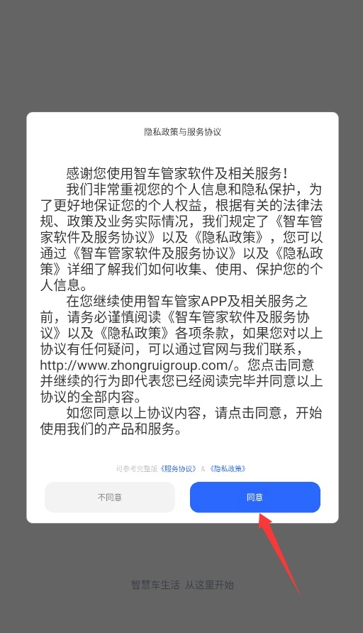 1、启动之后,仔细阅读用户协议内容,确认无误后点击底部同意并继续按钮进入主界面。
