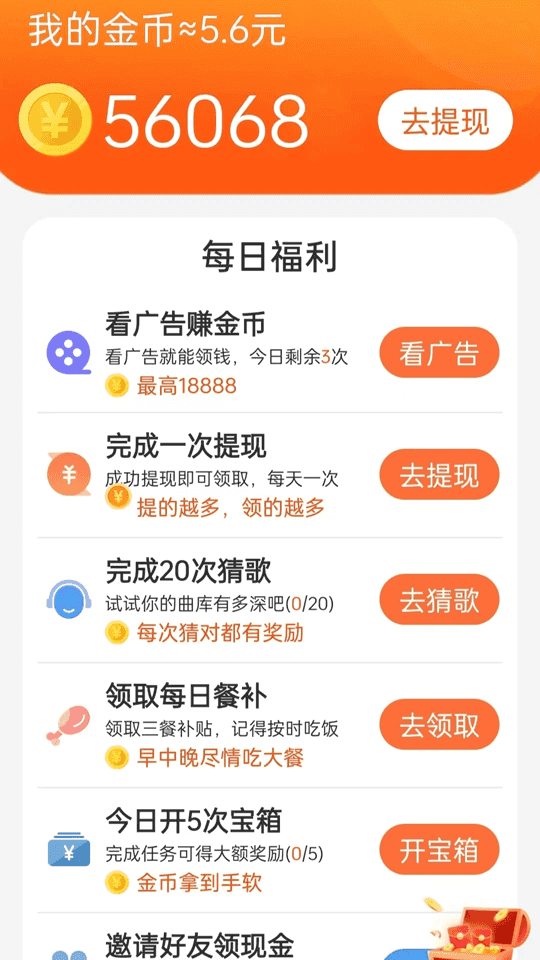 【每日福利大放送】提现即刻返还、每日享有餐补、参与有奖猜歌……众多精彩福利,等您来领取!