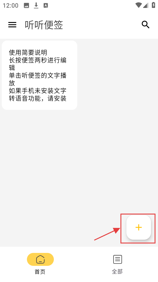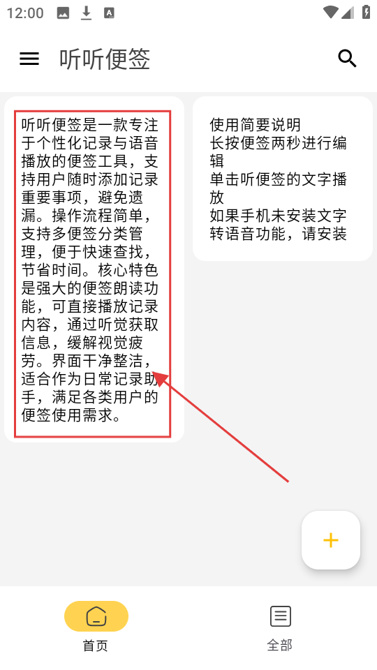 1、听听便签的首页设有使用说明,若想创建新的便签,只需点击右下角的【+】按钮,即可着手记录内容。