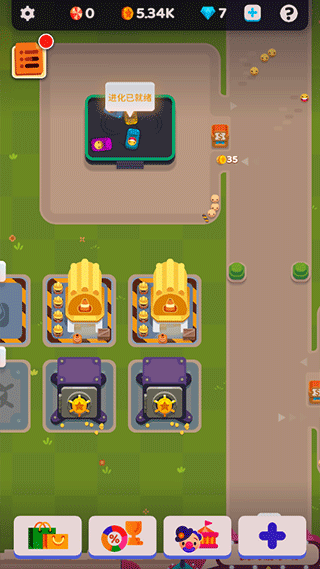 点击下方按钮,就能看到不少尚未解锁的娱乐设施;(游乐场里的宝箱能开出许多稀有的娱乐设施)