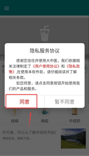 1、阅读并确认服务协议,点击进入中医健康功能主操作界面。