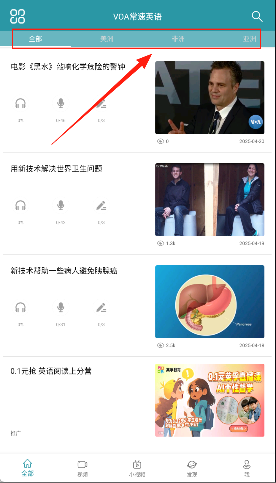3、发现界面可以进行英语相关的事宜。
