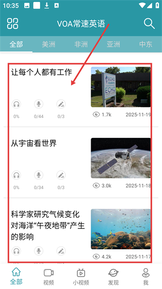 1、在【VOA常速英语】页面,选目标文章条目,就能进入对应的内容详情页,开始学习啦。