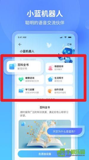 4、的小蓝机器人支持百科全书、健康咨询、学习启蒙等语音互动功能,满足日常陪伴需求。