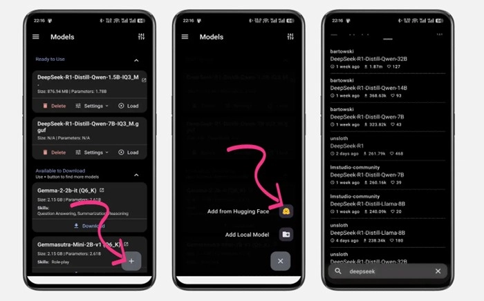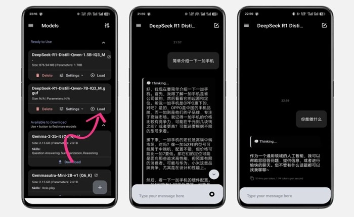 其他AI大模型,像DeepSeek这类的,可以点击右下角的添加按钮,把手机里已有的合适模型加载进来就可以了。