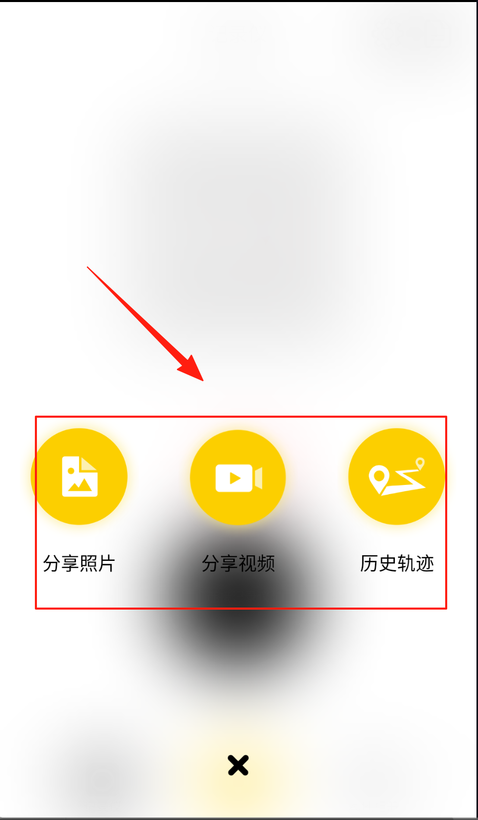 2、分享类型选择:用户可在照片、视频、轨迹这三个类别里,挑选一个自己想要分享发布的类型。
