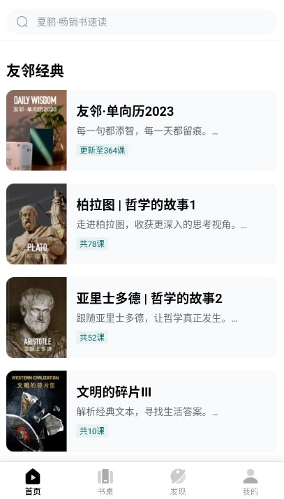 友邻优课是由北京每日友邻文化科技有限公司所发开的一款线上英语学习教育平台,该软件主要通过了优质的内容资源和专业的教育团队,助力于用户们快速提升全面的英语能力。此外,友邻优课中的课程内容由专业团队策划,涵盖了商业、戏剧、时尚、散文、读书、社交等多个领域,能够在帮助用户提供英语能力的同时,更加拓展了国际视野。