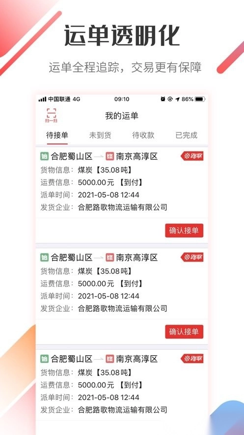 结算保专属福利:运费安全无忧,约定账期款项准时到账,若账期内急需资金可申请提前收款。