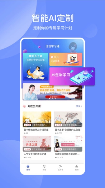 日语学习通借助AI技术,依据用户的学习状态与实际需求,为其量身打造个性化学习方案,助力用户更高效地开展日语学习。