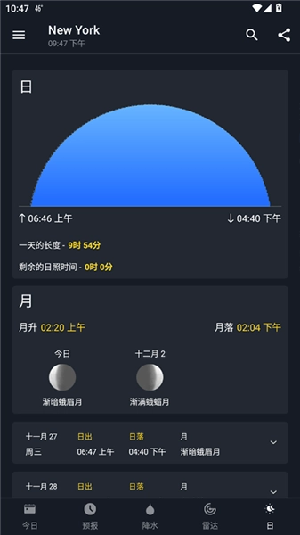 7、日出,日落,月出,月落时间及农历阶段;