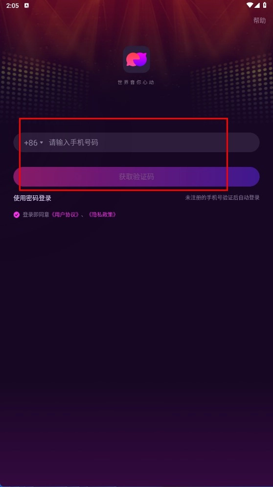 在登录页面,先输入手机号码,接着点击【获取验证码】按钮,通过验证步骤后进行登录操作,即可使用对应的各项功能。