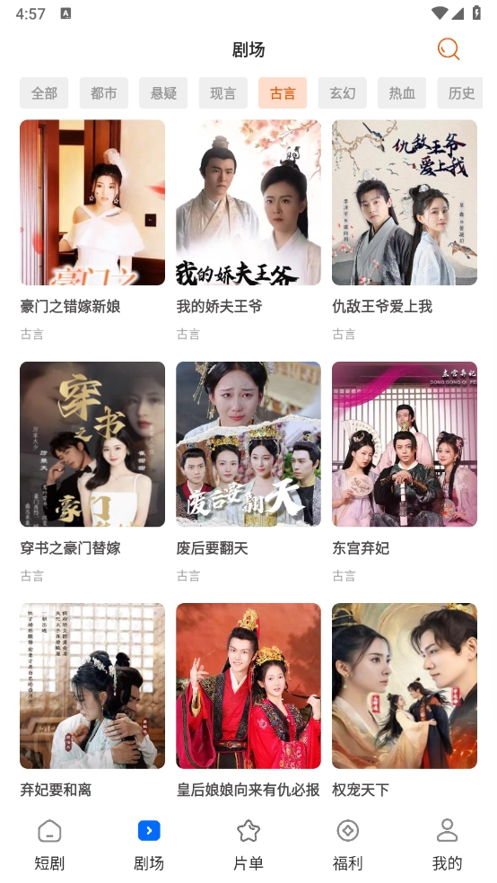 进入首页,便能看到丰富的短剧分类,涵盖言情、科幻、热血等多种类型。