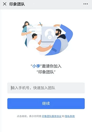 管理员把“团队码”发给需要邀请的员工。员工在手机端「印象团队」APP里点击【加入已有团队】,根据页面提示完成注册,等管理员审批通过后就能进入团队了。