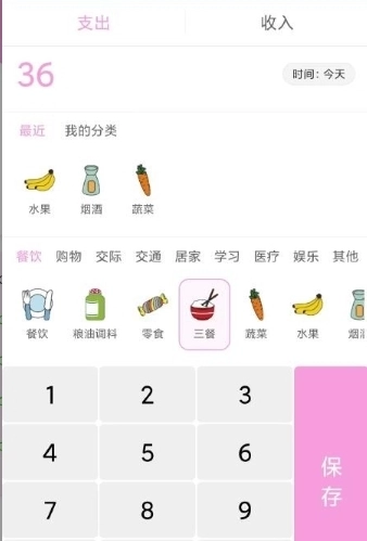 添加消费数据并选择对应的消费分类后,即可完成消费信息的保存操作。