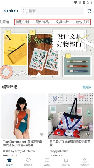 当然,在“逛设计”板块中我们对内容进行了分类整理,用户就能更快速地找到自己所需的物品了。