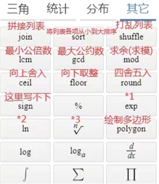 我们的Desmos科学计算器主键盘具备数字键盘功能,同时包含基本运算、基本三角函数、根、分数、指数及绝对值等功能。