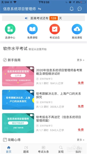 进入软考真题首页后,在免费课程板块中找到目标课程,点击该课程即可进入课程科目列表页面。