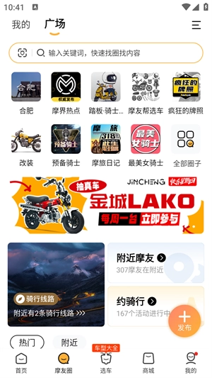 【玩车】买了摩托,玩车才是王道!寻找附近的摩友,看看身边圈子的动态,在哈罗摩托,你可以看到各种各样的花式玩法。分享你的摩旅、线路、经验、图片、视频,与百万摩友一起谈天说地!