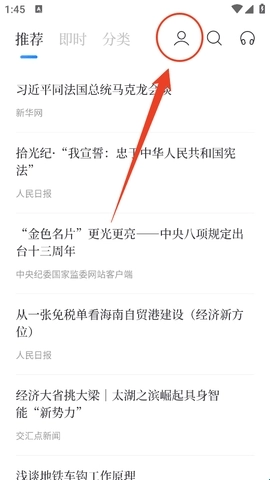 我们进入软件首页后,点击搜索框旁边那个简约风格的头像按钮。
