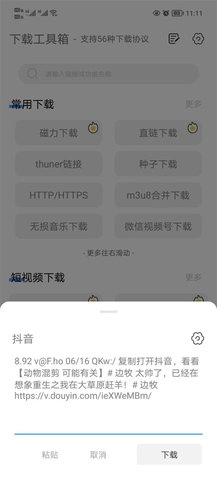以抖音视频为例,将复制的抖音视频链接粘贴,点击。