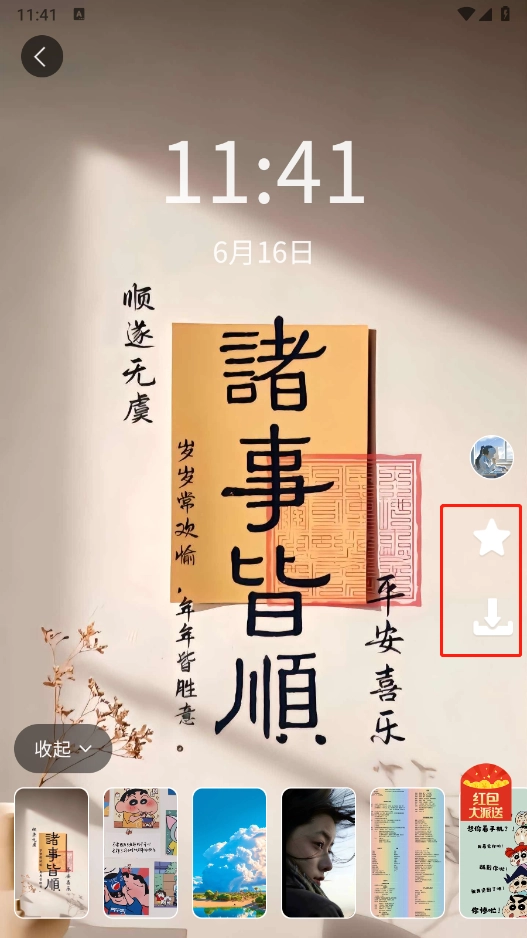 选择喜欢的壁纸资源之后,可以进行收藏以及。