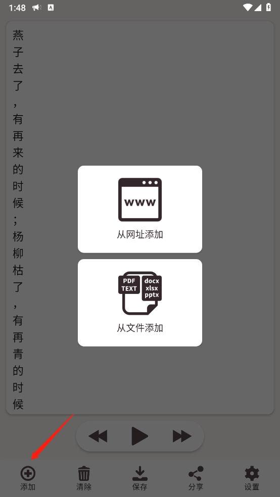 也可以点击左下方的“添加”按钮,通过它来添加网页或者导入文档。
