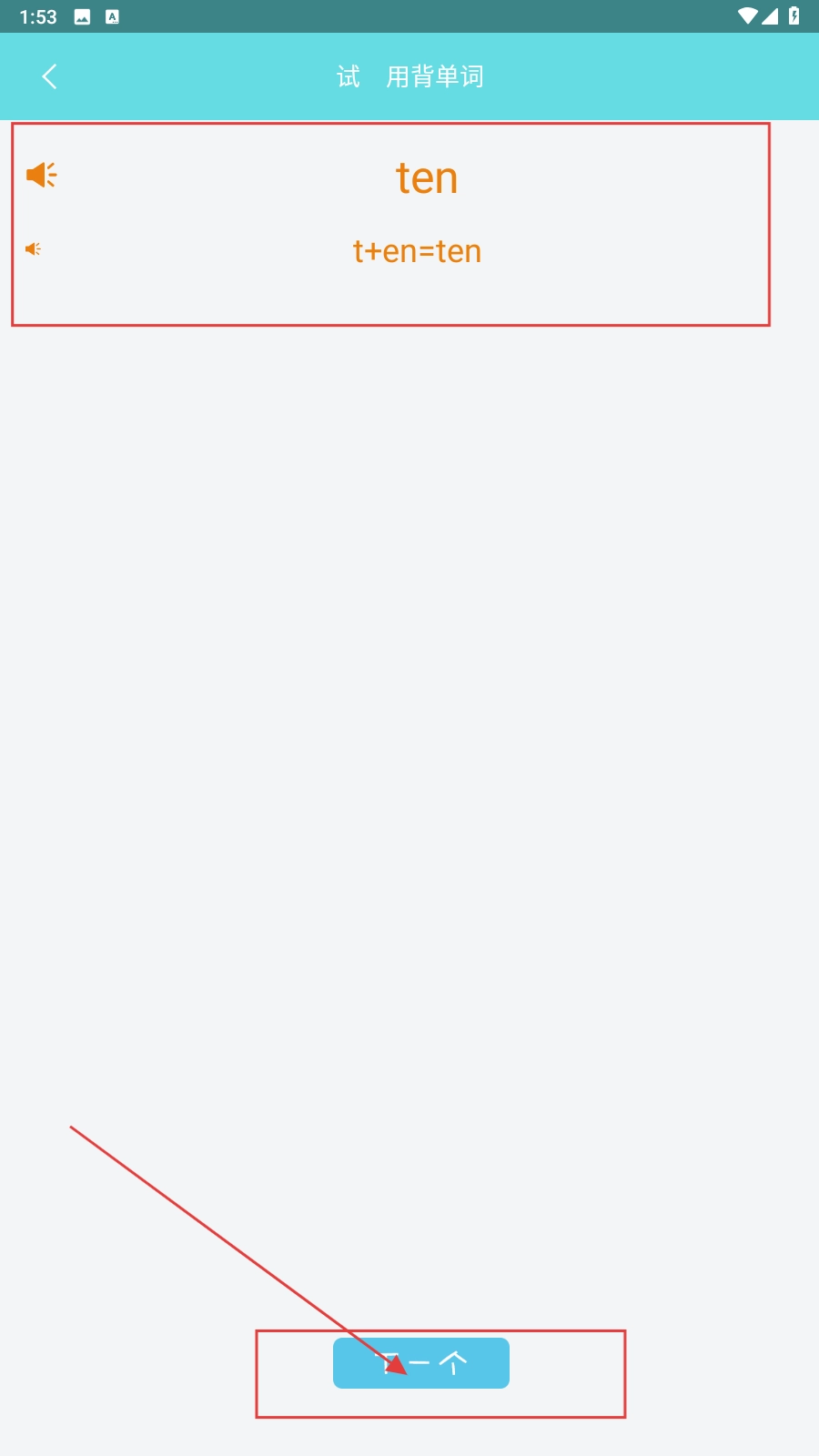 2、进入单词界面跟随学习,学会了点击【下一个】。