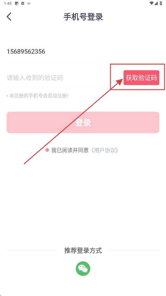 2、填写好后,点击【获取验证码】。