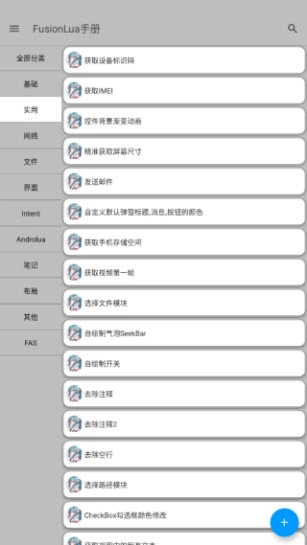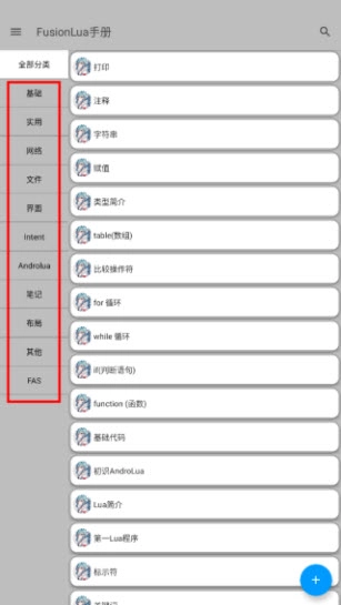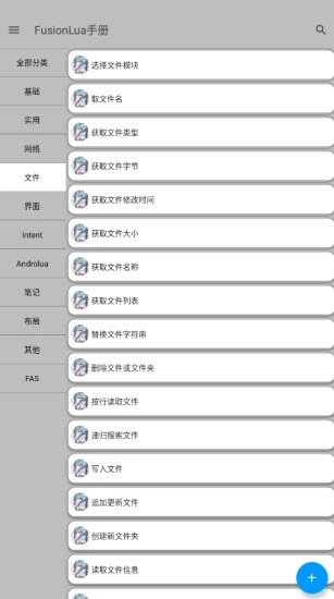 FusionLua手册是拾玖所FA手册的重制版,它在旧版FA手册的基础上新增了不少功能,网络、界面、笔记、布局、文件等各个板块都能找到对应的编码信息,你可以在软件里编写LuaJava代码,这款代码编辑器的功能十分强大!