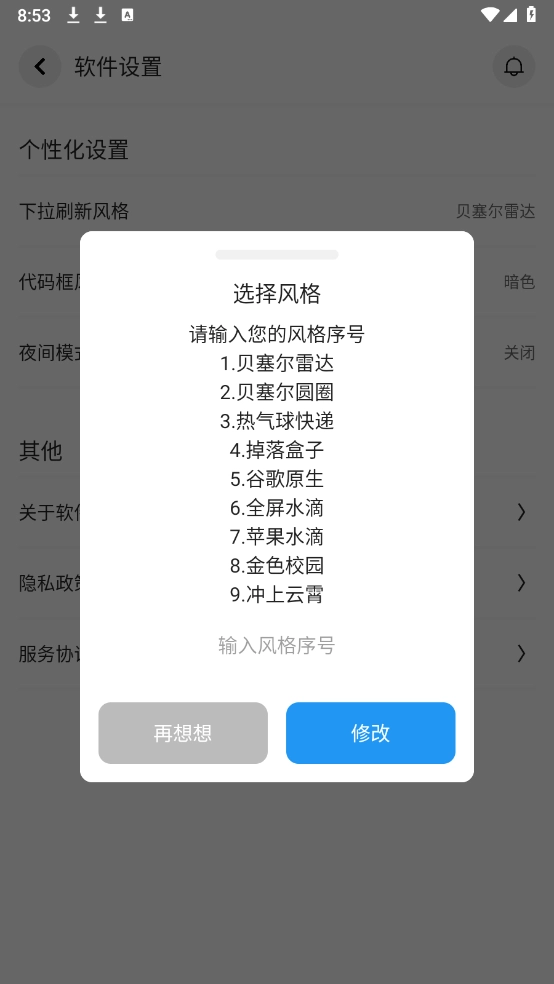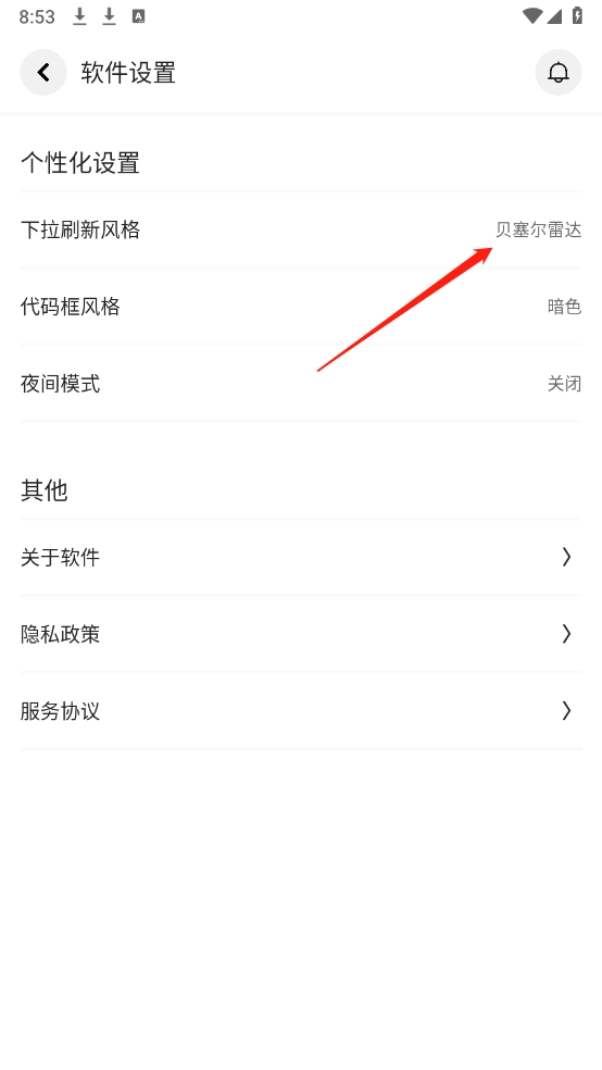 接下来点击“下拉刷新风格”选项,在弹出的列表里挑选对应的风格就可以了。