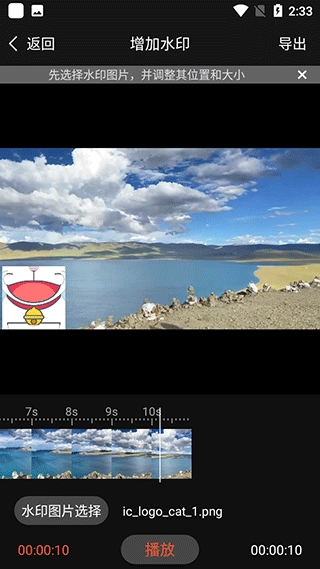 5、调整水印图片的大小及合适放置位置,完成后点击右上角“导出”即可。