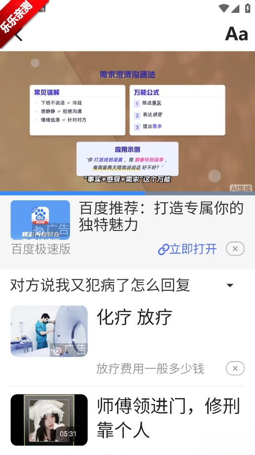 大字快报是一款专为中老年用户及视力不佳人群设计的新闻资讯应用,以“大字阅读”为核心,通过超大字体、简洁界面和多元化内容,提供清晰、便捷的阅读体验。该应用覆盖时事、健康、娱乐、生活等多个领域,并融入适老化功能,如语音朗读、手势操作等,致力于让用户轻松获取信息,享受数字生活的便利,涵盖时政、养生、戏曲、广场舞等18个垂直领域,每日精选更新3000+条适老化内容,满足不同兴趣需求,收录8000+个经典小品、戏曲选段等适老化视频,支持离线与投屏观看,日均播放量突破50万次,支持方言语音搜索(覆盖7种方言)与三指快捷操作(如下滑调节字体、双击朗读文章),简化智能设备使用门槛,提供夜间模式、离线等功能,满足不同环境下的使用需求。
