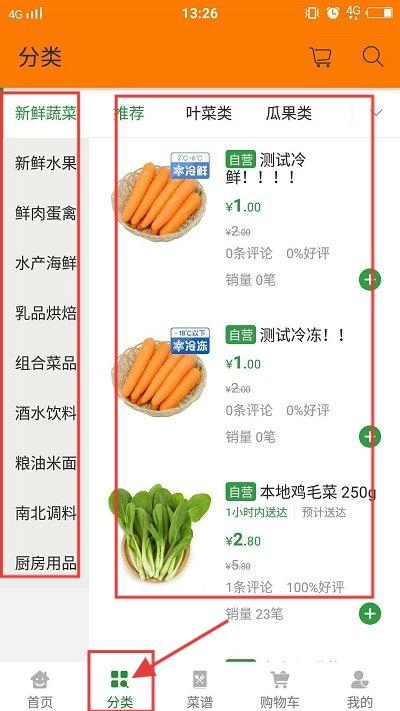 2、点击【分类】可以按照自己想买的食品类目进行选择。