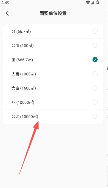 1、智农雷沃测亩仪默认的测量单位为亩。