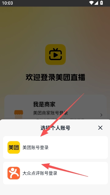 2、个人账号的登录方式,可通过美团或是大众点评直接登录进入。