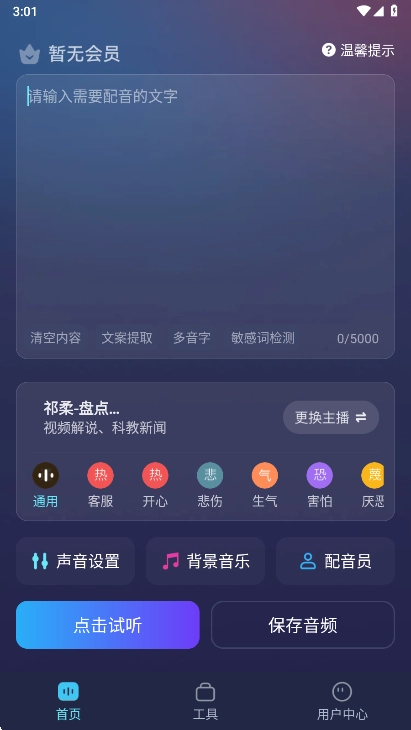 1、在本站安装掌上配音打开,进入到首页您可以浏览到基础的配音功能