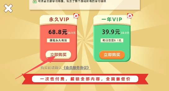 2、点击永久VIP服务选择立即购买,支付款项以后,激活解锁。