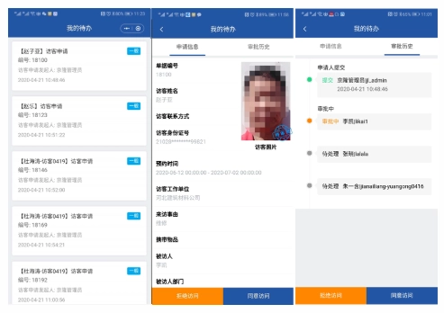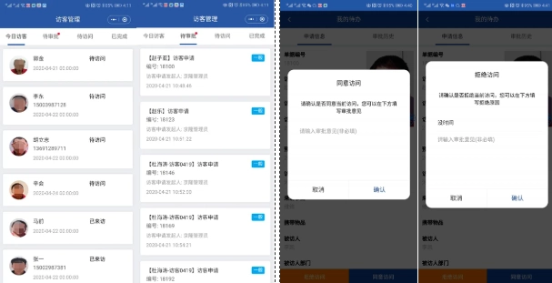 在访客管理中,用户可以查看所有访客信息,同时能够进行处理访客预约信息,包括同意访问和拒绝访问。