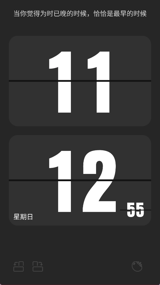 1、打开能看到醒目的翻页时钟效果,点击左下角可以切换横屏