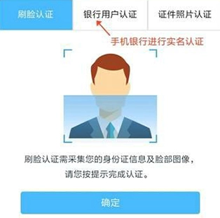 5、如果用户有手机银行,则选择手机银行认证!如果用户没有手机银行,则选择刷脸认证,扫描身份证正反面,按照提示刷脸。