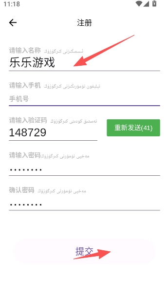 2、以手机号码短信验证的方式完成用户身份注册。