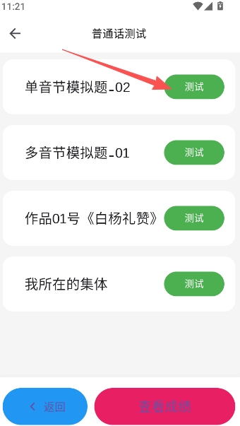 1、注册登录用户账号以后,点击测试页面的国家普通话水平测试模拟考试开始。